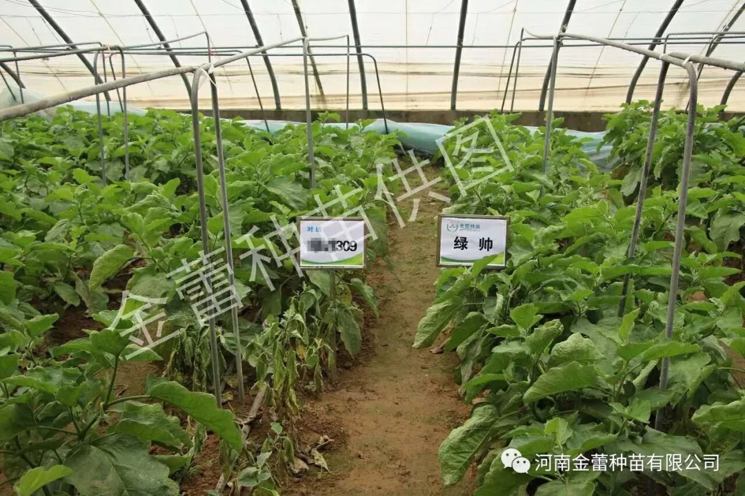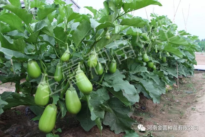 植株半開張,葉色濃綠色,5-7片葉可著生門茄,果實(shí)卵圓形,膨果速度快,連續(xù)座果能力強(qiáng),單果重750g左右。果皮鮮綠有光澤,后期不發(fā)白,貨架期長(zhǎng),商品性佳。
