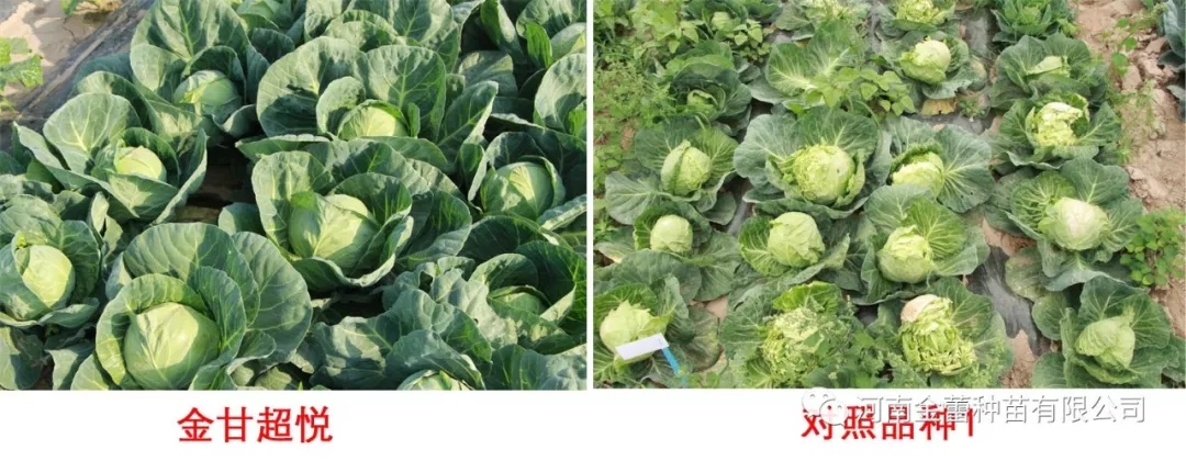金甘超悅是早熟品種,定植后50-55天成熟,耐裂球。球葉新綠,葉球正圓,球心黃色;植株開展度45cm左右,外葉11-13片,單球重1.5kg左右。該品種中抗根腫病,適宜密植,長(zhǎng)勢(shì)強(qiáng)健,口感佳,商品性好。