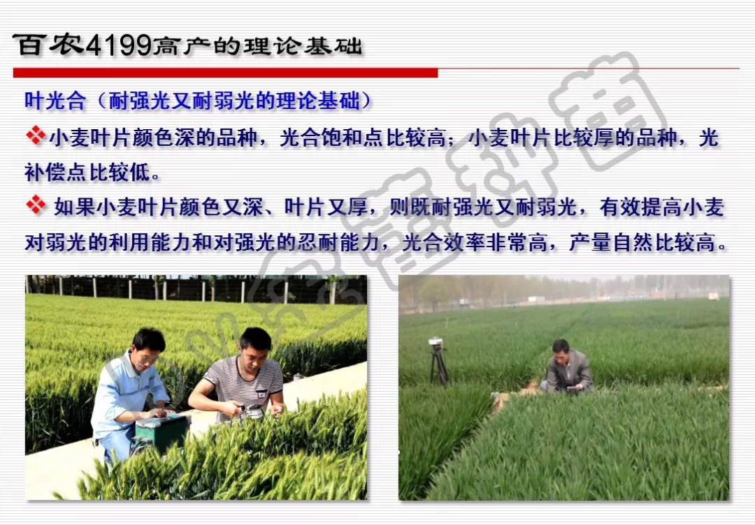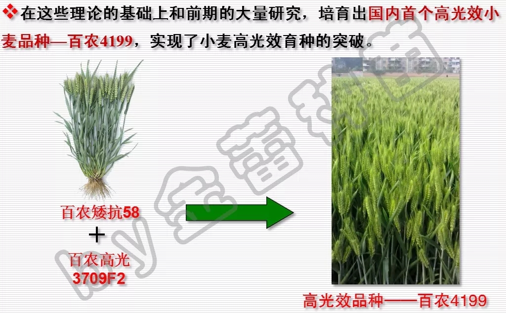 目標實施:茹振鋼教授科研團隊在全球采集小麥樣本,選擇了200個研究樣本進行對比。經(jīng)過3年研究,他發(fā)現(xiàn)靠近地球兩極的小麥耐弱光,葉片薄、葉片顏色黑;靠近赤道的小麥耐強光,葉片厚、葉片顏色淺。于是將兩者通過基因育種工程等科學技術(shù)手段相結(jié)合,培育出了葉片既厚且顏色深的國內(nèi)首個小麥高光效親本百農(nóng)高光3709F2 。 它可最大程度地利用陽光,增強了小麥的光合作用。
